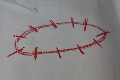 Hannah has been talking about the arrival of Good Friday for the past week anxiously awaiting this very sad day. She woke up late this morning, walked into the kitchen where her sister was eating breakfast and announced "Lily does not look sad!" After breakfast we did a little reflecting on Good Friday and the events that led up to Jesus' crucifixion. We pulled out our paper and crayons to put images with our words...